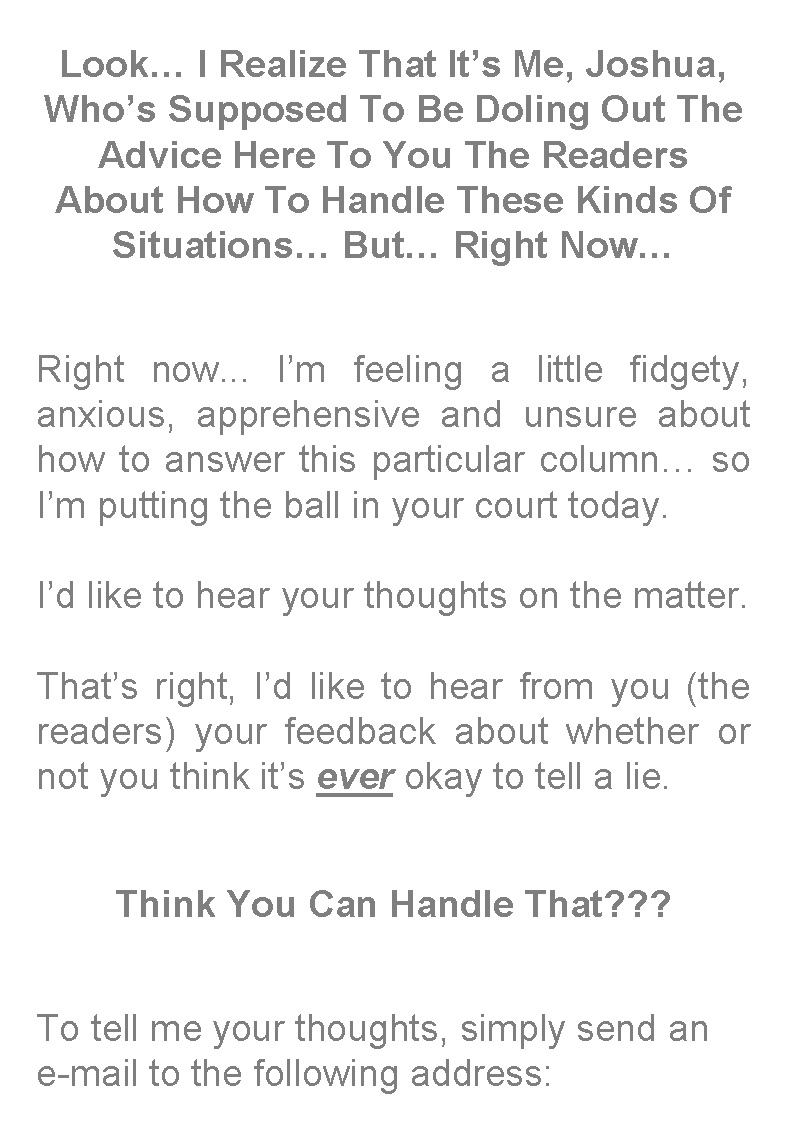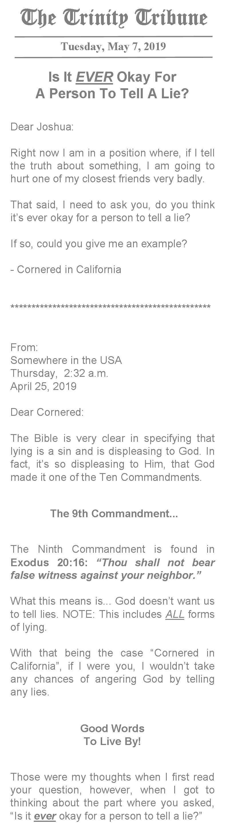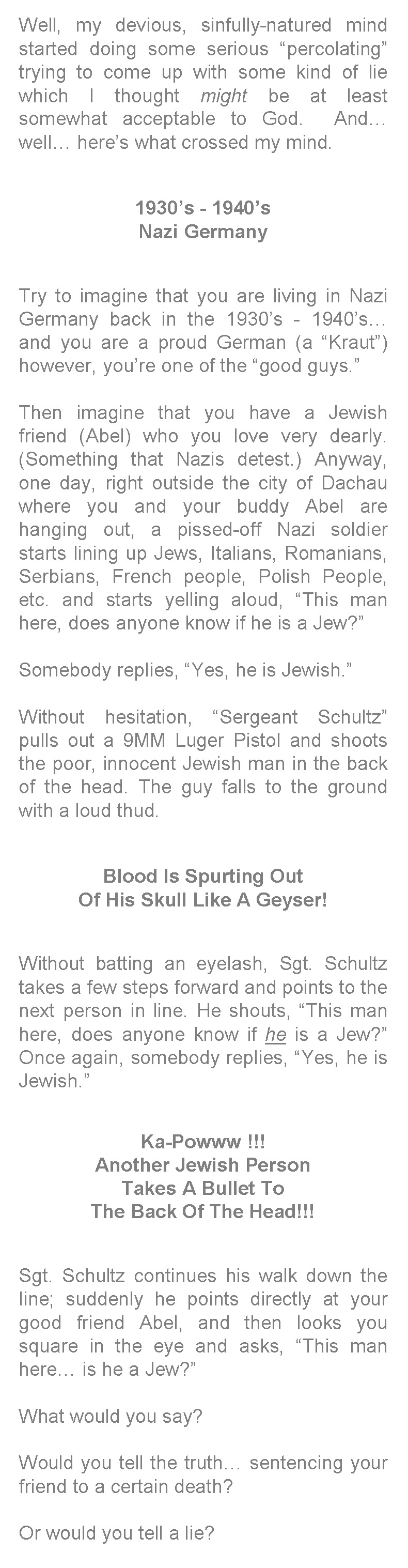 Is It EVER Okay For A Person To Tell A Lie? Submit a Comment Cancel replyYour email address will not be published. Required fields are marked *Comment * Name Email Website
