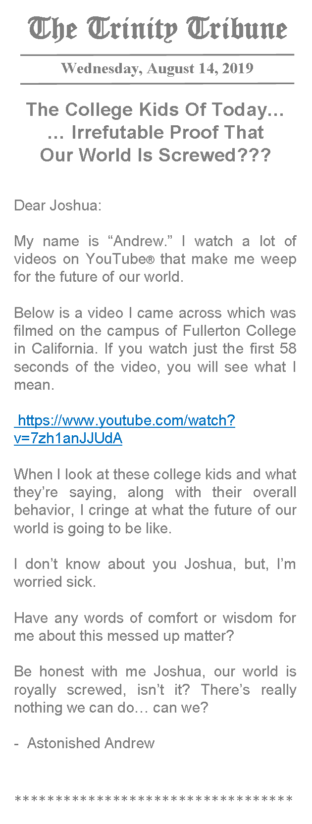 The College Kids of Today…Irrefutable Proof That Our World is Screwed??? Submit a Comment Cancel replyYour email address will not be published. Required fields are marked *Comment * Name Email Website